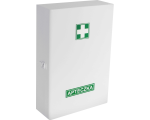 Metalowa apteczka A-400 BOSH, bez wyposażenia, do samodzielnego uzupełnienia. Charakteryzuje się solidną konstrukcją, odpornością na uszkodzenia i zapewnia miejsce do przechowywania podstawowych środków pierwszej pomocy w firmach, biurach czy pojazdach.