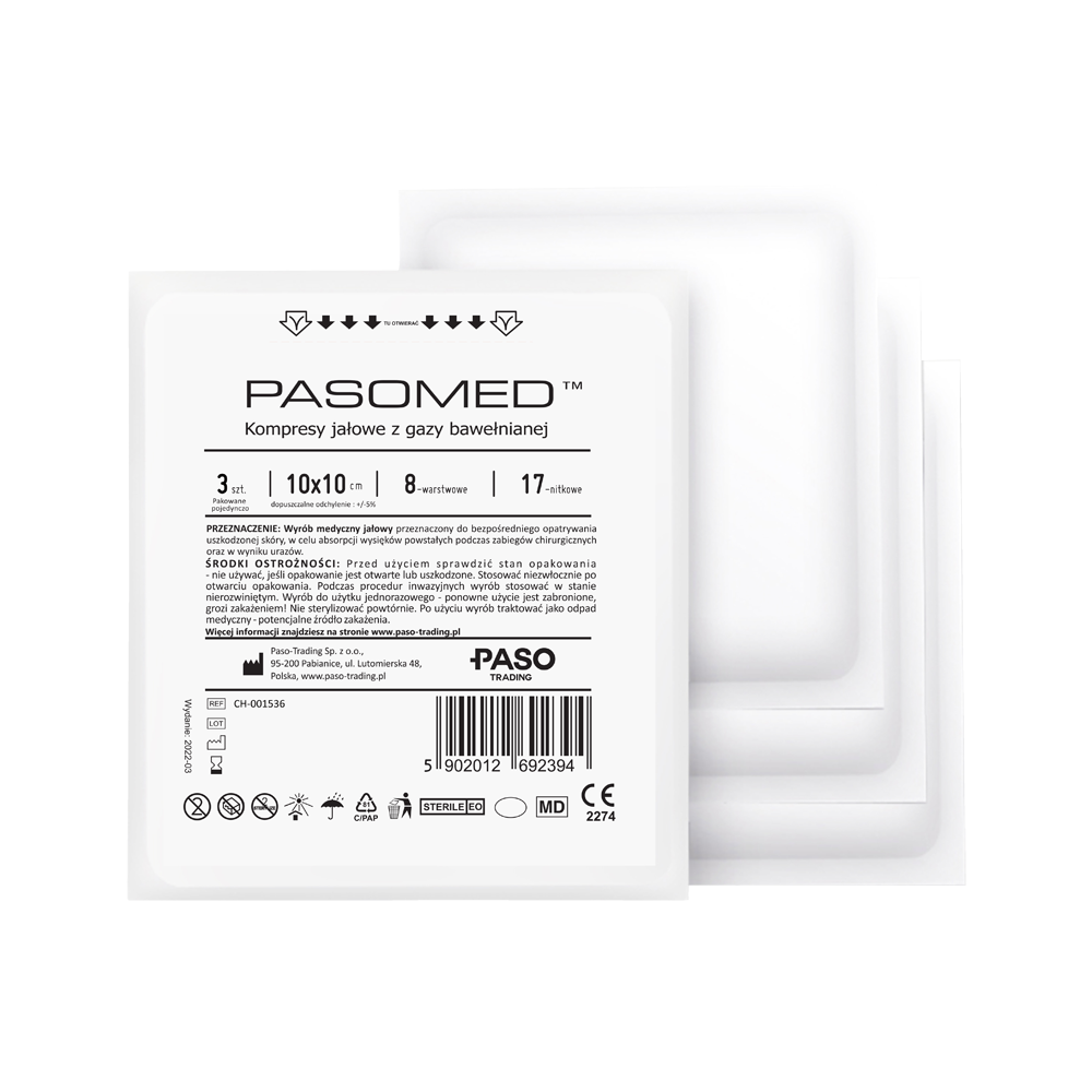 kompres gazowy jałowy 10x10cm pasomed 17n8w (kartonik 25x3szt)