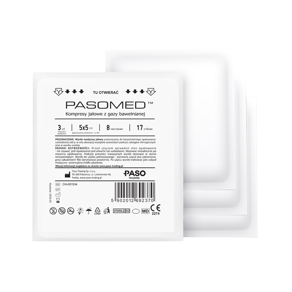 kompres gazowy jałowy 5x5cm pasomed 17n8w (kartonik 25x3szt)