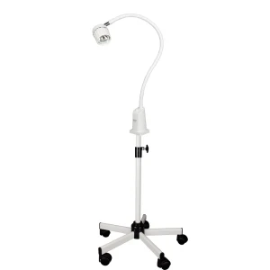 Mobilna lampa LED o wysokiej jakości oświetlenia, idealna do zabiegów i badań. Dzięki konstrukcji na kółkach jest łatwa do przemieszczania, co czyni ją praktycznym rozwiązaniem dla gabinetów lekarskich i sal operacyjnych.